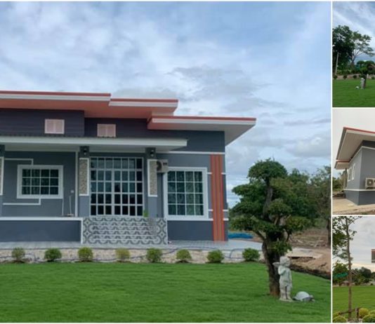 สวัสดีเพื่อนสมาชิก ดูไอเดียบ้าน และผู้สนใจแบบบ้านสวยๆ กำลังมองหาไอเดียหรือแบบสำหรับสร้างบ้านในฝันของตัวเองกันอยู่ ฝากติดตามเพจและเว็บของเราไว้ด้วยนะครับ เรามีบ้านสวย ไอเดียๆ มาฝากกันเป็นประจำทุกวัน สำหรับแบบบ้านที่เรานำมาให้ชมกันในวันนี้ ลักษณะออกแบบเป็นบ้านชั้นเดียวแนวโมเดิร์นหลังคาแบบเพิงแหงนลาเอียงเล่นระดับสองชั้น ตัวบ้านยกระดับพื้นสูงประมาณ 50 เซ็นติเมตร ผนังภายนอกโทนสีเทาแซมด้วยสีส้มเสริมความสวยเด่น หน้าบ้านมีระเบียงพักผ่อนพร้อมทำราวกั้นตกมุงด้วยเมทัลชีท ชมกันต่อเลยครับ
