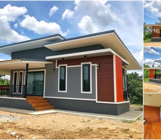 สวัสดีเพื่อนสมาชิก ดูไอเดียบ้าน และคุณผู้อ่านที่ชื่นชอบแบบบ้านสวยๆ หรือกำลังมองหาแบบบ้าน ไอเดียสำหรับสร้างบ้านกันอยู่ ฝากติดตามเพจและเว็บไซต์ของเราไว้ด้วยนะครับ เรามีบ้านสวย ไอเดียบ้านดีๆ มาให้ชมกันเป็นประจำทุกวัน และวันนี้เราก็มีบ้านสวยงบหลักแสนมาฝากอีกหลัง ลักษณะออกแบบเป็นบ้านชั้นเดียวสไตล์โมเดิร์น หลังคาแบบทรงแหงนลางเอียงไปด้านหลังบ้าน ตัวบ้านยกระดับพื้นสูงประมาณ 1 เมตร ช่วยบ้านดูสวยเด่นและห้องกันน้ำท่วมขังด้วย หน้าบ้านมีระเบียงแนวยาวตามรูปทรงตัวบ้านพร้อมทำราวกั้นตกด้วย ติดตามชมกันต่อเลยครับ