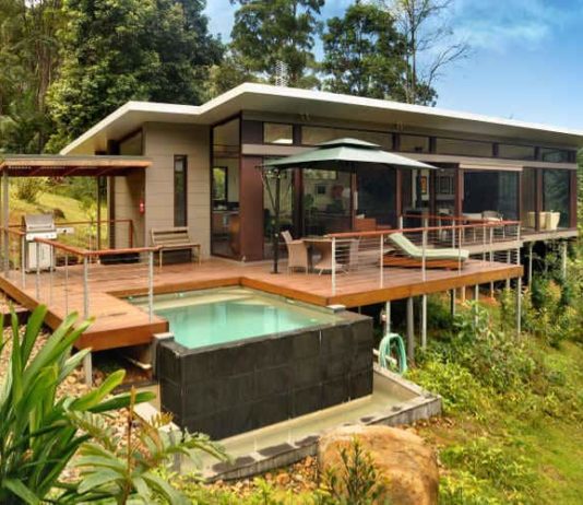 สวัสดีเพื่อนสมาชิก "ดูไอเดียบ้าน" และท่านผู้กำลังมองหาไอเดียเพื่อสร้างบ้านสวยในฝันของตัวเองอยู่ วันนี้เรามีแบบบ้านแนวโมเดิร์นสไตล์บ้านพักตากอากาศมาฝากกัน สำหรับบ้านหลังนี้เป็นบ้านชั้นเดียวสไตล์โมเดิร์น ตัวบ้านยกพื้นสูงประมาณ 1 เมตร ผนังผสมผสานปูนเปลือยแนวลอฟท์สวยเทห์ทันสมัย เน้นระเบียงพักผ่อนนอกบ้านกว้างๆ เพื่อเป็นพื้นที่พักผ่อน ชมวิวธรรมชาติรอบๆ ตัวบ้าน พื้นที่ใช้สอยออกแบบกว้างขวางฟังก์ชั้นใช้งานครบพร้อม สำหรับบ้านหลังนี้ผลงานออกแบบก่อสร้างโดย "น็อคดาวน์ & Home Design" ติดตามชมกันต่อเลยครับ