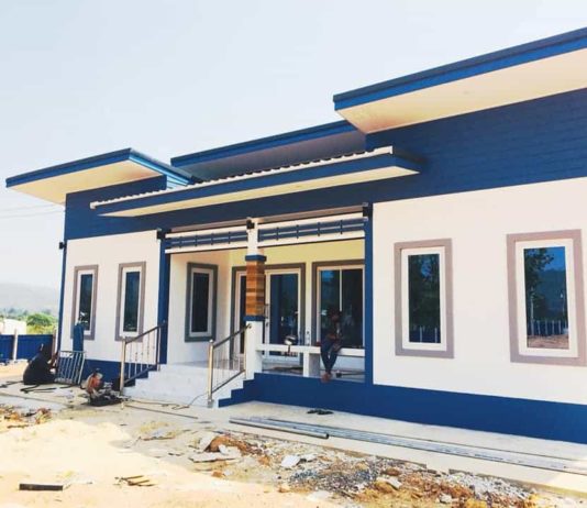แบบบ้านชั้นเดียวทรงปั้นหย่า ลักษณะสไตล์คอนเทมโพรารี่ หลังทรงปั้นหย่า ตัวบ้านยกพื้นสูงประมาณ 1 เมตร หน้าบ้านมีเฉลี่ยงทำเป็นม้านั่งพักผ่อนของครอบครัว ภายในตัวบ้านโล่งกว้างจัดสรรพื้นที่ใช้สร้อยได้อย่างลงตัว ฟังก์ชั้นภายในตัวบ้านประกอบด้วย 2 ห้องนอน 2 ห้องน้ำ 1 ห้องครัว และห้องโถ่งรับแขก ก่อสร้างด้วยงบประมาณ 1,075,000 บาท ผลงานก่อสร้างโดยคุณ Nonglak Phonprayod สมาชิกคนแบบบ้าน ติดตามชมกันเลยครับ