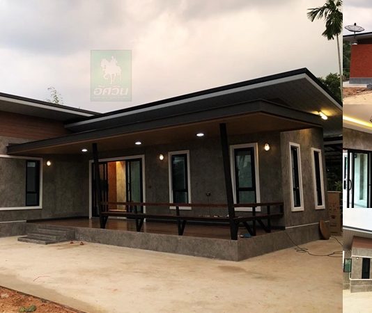 สวัสดีเพื่อนสมาชิก ดูไอเดียบ้าน และผู้สนใจแบบบ้านสวยหรือกำลังมองหาแบบบ้านหรือไอเดียสำหรับสร้างบ้าน กลับมาพบกันวันนี้ทางเว็บเราก็มีไอเดียสร้างบ้านสวยมาฝากกันอีกหลัง สำหรับบ้านหลังนี้ลักษณะบ้านเป็นบ้านชั้นเดียวออกแบบสไตล์โมเดิร์นหลังคาแบบทรงแหงนเรียบง่าย ตัวบ้านยกระดับพื้นเล็กน้อย ผนังภายนอกบ้านแบบปูนเปือยแนวลอฟท์ตกแต่งด้วยงานไม้ของประตูและหน้าต่างสวยงามลงตัวมาก หน้าบ้านและหลังบ้านมีระเบียงพักผ่อน ขอบคุณข้อมูลจากคุณ Anuwat CH สมาชิกคนแบบบ้าน ติดตามชมกันได้เลยครับ